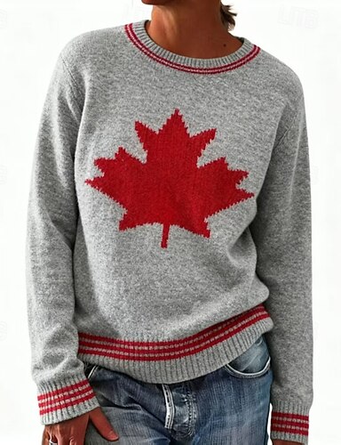 בגדי ריקוד נשים סוודר חג המולד סוודר Fair Isle סוודר סוודר האי הוגן סגנון רחוב יום יומי פרחוני צווארון עגול קצר סרוג דפוס שרוול ארוך חולצות רגילות לִסְרוֹג חגים ליציאה סוף שבוע לבן אודם סתיו חורף