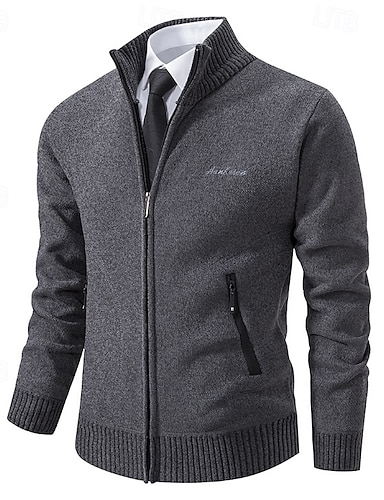 בגדי ריקוד גברים סוודר סוודר שמלה סוודר קרדיגן מצולע לִסְרוֹג חולצות רגילות סרוג עומד חימומים מודרני עכשווי בחזרה לבית הספר לבוש יומיומי ביגוד סתיו חורף אפור בהיר אפור כהה S M L