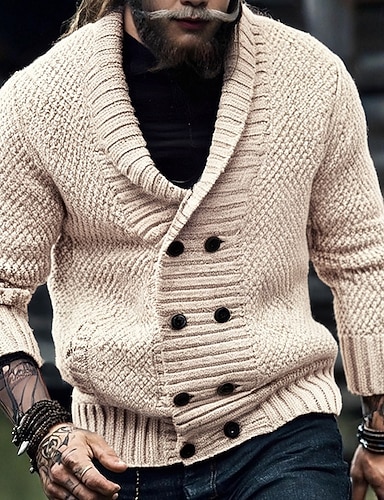 בגדי ריקוד גברים סוודר קרדיגן סוודר קצוץ לִסְרוֹג כפתור למעלה סרוג אחיד צווארון צעיף (שאל) וינטאג' חימומים קזו'אל לבוש יומיומי ביגוד סתיו חורף שחור לבן M L XL