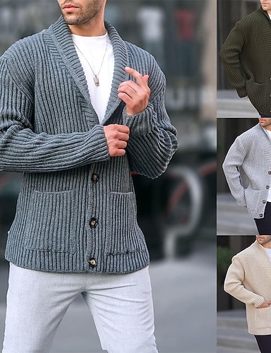 זכר סוודר קרדיגן קרדיגן ז'קט סוודר שמנמן לִסְרוֹג רגיל סרוג צווארון צעיף (שאל) לבוש יומיומי ביגוד סתיו חורף חאקי M L XL