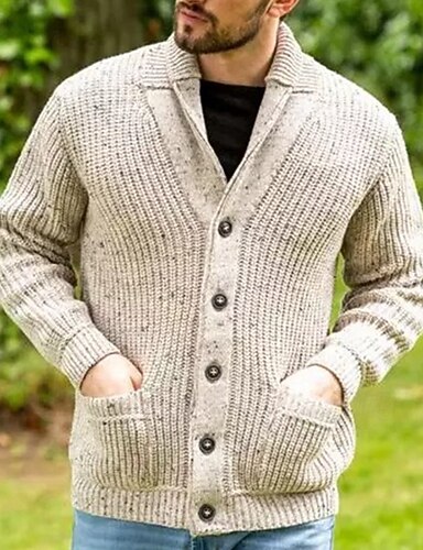 בגדי ריקוד גברים סוודר קרדיגן סוודר סרוג מצולע לִסְרוֹג רגיל כפתור למעלה צבע אחיד צווארון צעיף (שאל) אופנתי קלסי לבוש יומיומי פגישה (דייט) ביגוד סתיו חורף אפור M L XL