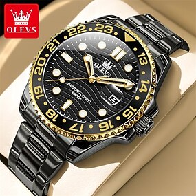 שעון עסקי חדשים של אולב'ס עם רצועת פלדה זוהר בחושך לוח שנה ספירה לאחור זמני פנאי קוורץ עם מים עמידים לגברים