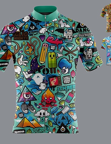 בגדי ריקוד גברים חולצת ג'רסי לרכיבה גראפי מעוטר מצחיק שרוולים קצרים אופנייים ג'רזי צמרות עם 3 כיסים אחוריים רכיבת הרים רכיבת כביש ייבוש מהיר רך רצועות מחזירי אור כיס אחורי ספורט כחול כתום ירוק ביגוד
