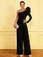 אוברול שמלה לאם הכלה אלגנטית פשוט כתפיה אחת עד הריצפה בד מתיחה שרוול ארוך עם פרח צבע אחיד