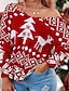 בגדי ריקוד נשים סוודר סגנון רחוב יום יומי פרחוני צווארון V פתוח בגב סרוג דפוס שרוול ארוך חולצות רגילות לִסְרוֹג חג מולד יומי חגים אודם סתיו חורף