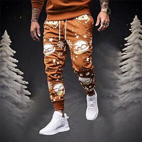 חג המולד גברים סצנת חג המולד מכנסיים מודפסים פתית שלג קז'ואל מכנסיים בהדפס תלת מימד בחוץ רחוב יוצא פוליאסטר יין שחור כחול s m l מכנסיים גמישות באמצע מותן