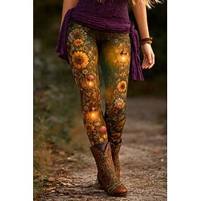 בגדי ריקוד נשים צ'ינו חותלות טייץ נעים חופשה יום יומי באורך מלא מותניים גבוהים פרחוני מדפיס שמור על חום הגוף נוח סטרצ'י (נמתח) קזו'אל יומי חופשה שחור צהוב כתום חום סתיו חורף גזרה צרה
