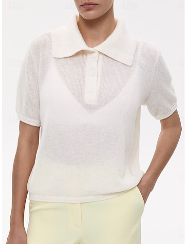 בגדי ריקוד נשים סוודר יומי מסוגנן יום יומי צבע אחיד מצולע צווארון עגול קצר סרוג שרוול 4\3 חולצות רגילות לִסְרוֹג בָּחוּץ יומי שחור לבן קיץ אביב