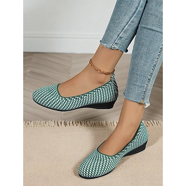 נעלי נשים סרוגות רצועות צולבות בגזרה רחבה של מרי ג'יין - נעליים יחפות קלות משקל לאביב וללבוש יומיומי