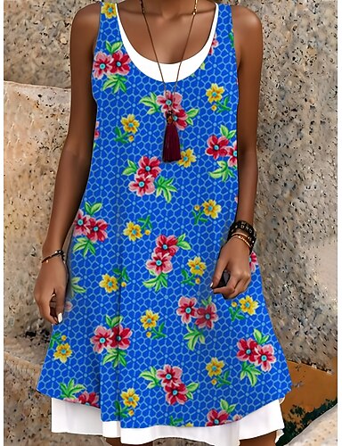 בגדי ריקוד נשים שמלת מיני שמלת קז'ואל שמלת קיץ אופנתי מודרני יומי חוף סוף שבוע רגיל פרח ללא שרוולים צווארון עגול קצר תלתן אביב סתיו