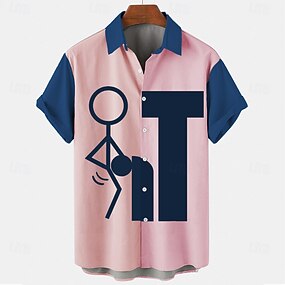 בגדי ריקוד גברים אותיות חולצה קז'ואל חולצה עם כפתורים שרוולים קצרים אופנה קז'ואל קזו'אל קיץ אביב צווארון מתקפל כפתור למעלה שחור ורוד מסמיק בז'