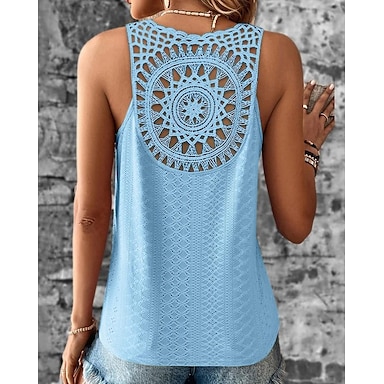 בגדי ריקוד נשים חולצה חולצת בוהו אחיד אופנתי צווארון V רחוב יומי תחרה לבן כחול סקיי קיץ