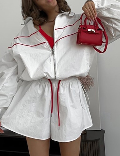 בגדי ריקוד נשים אימונית מכנסי טרנינג קצרים בגדי טרקלין שרוך כיס אחיד חליפות בגדים קיץ לבן ירוק חדר כושר אימון ריצה מותניים גבוהים עמיד קל משקל פתילת לחות שרוול ארוך ספורט לבוש אקטיבי מיקרו-אלסטי