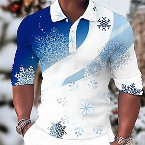 פולו חג המולד גברים פולו חג המולד חולצת פולו גברים חולצת גולף הדפסים גרפיים פתית שלג יין כחול חום ירוק אפור הדפס רחוב מזדמן שרוולים ארוכים ביגוד ביגוד אופנה