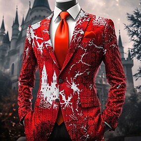 בגדי ריקוד גברים בלייזר מעיל ליל כל הקדושים קזו'אל פֶסטִיבָל יום יומי קז'ואל סתיו חורף 100% פוליאסטר גוגולות הדפסת תלת מימד כפתורים שמור על חום הגוף נוח חזה יחיד בְּלֵיזֶר אודם