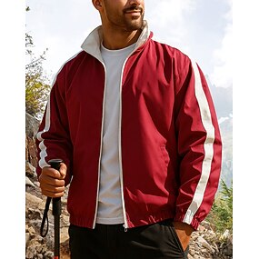 בגדי ריקוד גברים בולם רוח מעיל ג'קט לטיולי הליכה חיצוני עמיד למים עמיד בגדי טיולים אביב סתיו צמרות מחנאות / צעידות / טיולי מערות ריצה צבע אחיד שחור אדום כחול