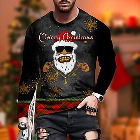 בגדי ריקוד גברים סנטה קלאוס הדפסים גרפיים חולצה קצרה שרוול ארוך חולצה צווארון עגול קצר חג מולד בָּחוּץ הדפסת תלת מימד שחור אודם פול דפוס ביגוד ספורט מעצב בסיסי יום יומי