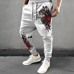 בגדי ריקוד גברים זאב ורד מכנסי טרנינג רָץ לְהַנָאָתוֹ מכנסיים מותן בינוני שרוך מותן אלסטי אופנתי יום יומי בגדי ערב למסיבה לבוש ליום כיס אביב סתיו חורף הדפסת תלת מימד לבן בז'