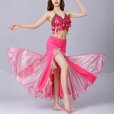 ריקוד בטן חצאיות מטבעות זהב צבע טהור שחבור בגדי ריקוד נשים הצגה הדרכה ללא שרוולים גבוה פוליאסטר