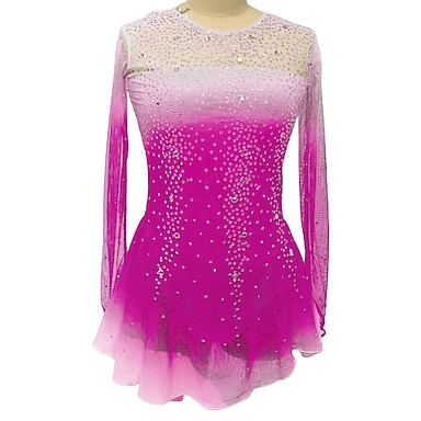 שמלה להחלקה אמנותית בגדי ריקוד נשים בנות החלקה על הקרח שמלות סגול אדום ורד טלאים רשת גמישות גבוהה הדרכה תחרות ביגוד להחלקה על הקרח קלאסי קריסטלים / אבנים נוצצות שרוול ארוך החלקה על קרח החלקה אמנותית