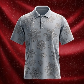 חג המולד בגדי ריקוד גברים פתית שלג פּוֹלוֹ שרוולים קצרים חולצות פולו דש יום יומי חגים תלבושת פסטיבל הדפסת תלת מימד כפתורים קיץ אודם פול אפור