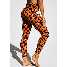 בגדי ריקוד נשים טייץ פילאטיס מכנסי כושר טייץ למכון כושר כיסים מס בולים כיסי צד פילאטיס חדר כושר כושר אמון מכנסיים טייץ רכיבה על אופניים חותלות גראפי משובץ חג ליל כל הקדושים אחלמה כתום ספורט