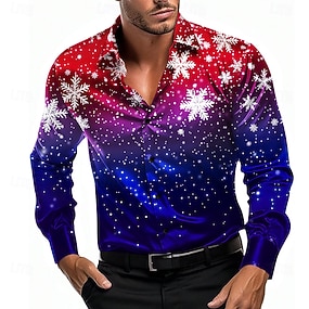 חג המולד בגדי ריקוד גברים פתית שלג חולצת סאטן שמלת שמלה חולצה עם כפתורים שרוול ארוך יום יומי חופשה בגדי ערב למסיבה לבוש ליום קיץ אביב סתיו חולצות עם צווארון הדפסת תלת מימד צהוב אודם פול סגול תלתן