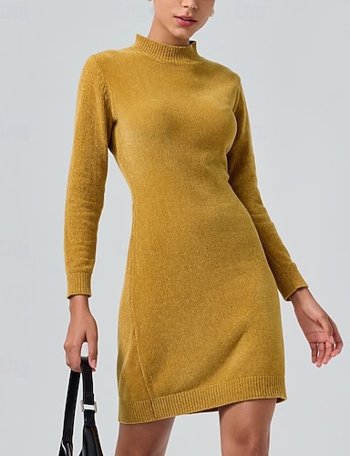 בגדי ריקוד נשים עליוניות צמודות צבע אחיד אחיד אלגנטית נשים מסוגנן שרוול ארוך צווארון גבוה חולצות רגילות עבודה יומי ליציאה בד נשפך שחור צהוב חום משמש סתיו חורף
