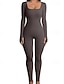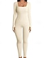 בגדי ריקוד נשים נורמלי סרבלים סגנון רחוב צבע אחיד שרוול ארוך צווארון U חופשה רחוב רגיל שחור לבן חאקי אביב