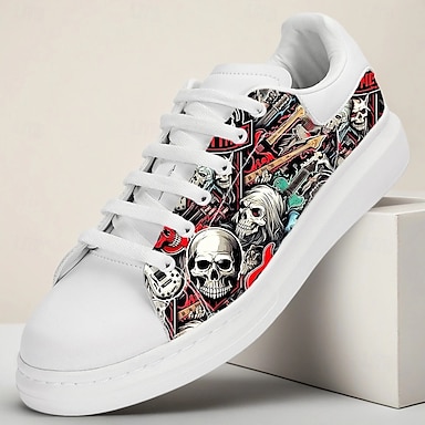 נעלי ספורט לבנות לגברים עם דוגמת גולגולת וקורי עכביש לאופנה גותית, הופעות רוק ומראות רחוב