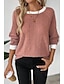 בגדי ריקוד נשים חולצה צבע אחיד וינטאג' טרופי מסוגנן שרוול ארוך צווארון עגול קצר חולצות רגילות עבודה יומי גיפור ורוד מסמיק אודם תלתן אפור אביב סתיו חורף אביב, סתיו, חורף, קיץ