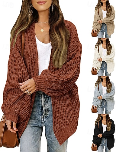בגדי ריקוד נשים סוודר קרדיגן אופנתי סגנון רחוב יומי צבע אחיד מצולע חזית פתוחה סרוג שרוול ארוך חולצות רגילות לִסְרוֹג חגים ליציאה סוף שבוע שחור חאקי סתיו חורף