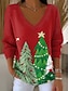 בגדי ריקוד נשים סוודר אופנתי סגנון רחוב יום יומי גראפי עץ חג המולד צווארון V גדול סרוג שרוול ארוך חולצות רגילות לִסְרוֹג בָּחוּץ יומי אודם אביב סתיו