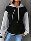 בגדי ריקוד נשים סווטשירט קפוצ'ון סוודר אחיד ספורט אופנתי יום יומי שרוול ארוך עם קפוצ'ון חולצות רגילות רחוב לבוש ליום שחור לבן סתיו חורף