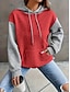 בגדי ריקוד נשים סווטשירט קפוצ'ון סוודר אחיד ספורט אופנתי יום יומי שרוול ארוך עם קפוצ'ון חולצות רגילות רחוב לבוש ליום שרוך יין סתיו חורף