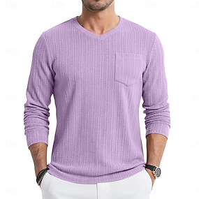 בגדי ריקוד גברים חולצה קצרה טי סריג צלעות טופ טי חולצה ארוכת שרוולים שרוול ארוך צווארון V אביב סתיו חורף אחיד Pit Strip אופנתי מעצב בסיסי סרוג סריגה חופשה רחוב קזו'אל פול סגול חום חולצה עליונה לגברים