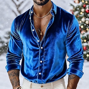 בגדי ריקוד גברים חולצה צהוב יין כחול רויאל תלתן שרוול ארוך צבע אחיד אחיד צווארון חולצה קרנבל חג מולד כפתורים ביגוד חג מולד אלגנטית חם פעיל