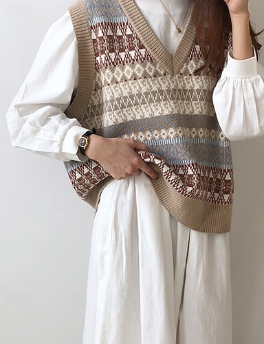 בגדי ריקוד נשים סוודר אפוד סוודר וינטאג' סגנון רחוב פרחוני צווארון V סרוג דפוס ללא שרוולים חולצות רגילות לִסְרוֹג בָּחוּץ יומי חגים משמש אביב סתיו
