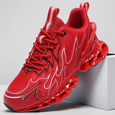 נעלי ריצה לגברים בצבע אדום להבה – נעלי ספורט קלות ונושמות עם עיצוב גרפי נועז לריצה, כושר, אופנת רחוב וסגנון יומיומי