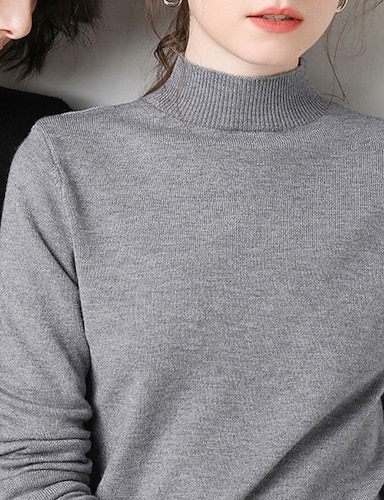בגדי ריקוד נשים סוודר סגנון רחוב יום יומי צבע אחיד עומד סרוג שרוול ארוך חולצות רגילות לִסְרוֹג יומי ליציאה סוף שבוע שחור לבן סתיו חורף