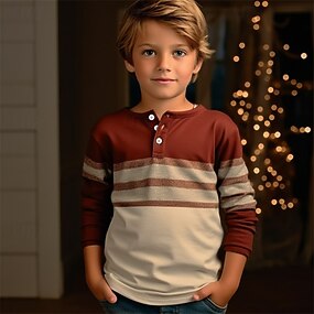 בנים תלת מימד פס חולצת טריקו של חג המולד חולצת הנלי שרוול ארוך הדפסת תלת מימד סתיו חורף ספורט אופנתי סגנון רחוב ילדים 3-12 שנים 4-12 שנים צווארון עגול קצר בָּחוּץ קזו'אל יומי רגיל