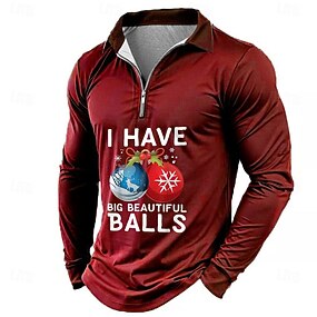 חג המולד בגדי ריקוד גברים מצחיק זיפ פולו שרוול ארוך חולצות פולו קולר עסקים מזדמנים חופשה בגדי ערב למסיבה חולצות לראש השנה הדפסת תלת מימד אביב סתיו חורף שחור יין פול