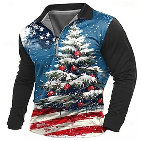 חג המולד לגברים עץ חג המולד 3D רוכסן פולו עץ מזדמן רוכסן גולף שרוול ארוך חיצוני מזדמן יומי בגדי רחוב סתיו & חורף הדפסת תלת מימד פוליאסטר כחול רוכסן