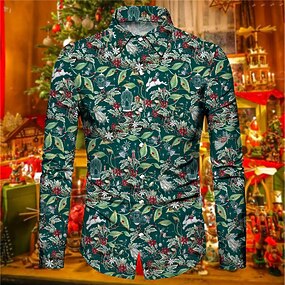 חג המולד גברים סצנת חג המולד חולצות מודפסות חולצות הדפסים גרפיים פרחוניים יין ירוק הדפס תלת מימד ברחוב הדפס שרוולים ארוכים ביגוד ביגוד מעצב אופנה קז'ואל