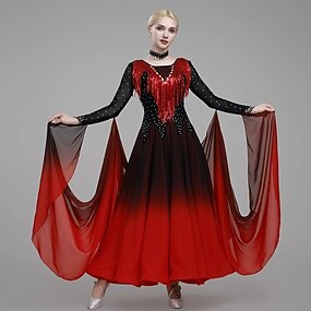 ריקודים סלוניים שמלה שחבור בגדי ריקוד נשים הצגה מפלגה שרוול ארוך שיפון רשת ספנדקס