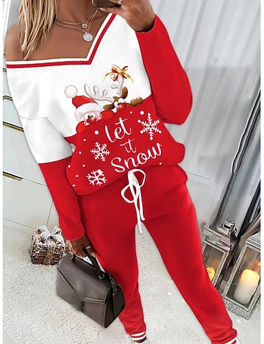 בגדי ריקוד נשים אופנתי סגנון רחוב ערכות מכנסיים בולרו טופ שרוול ארוך צווארון V חג המולד המכוער דפוס חג מולד בָּחוּץ עבודה יין סתיו רגיל