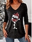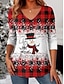 חג המולד בגדי ריקוד נשים חולצה קצרה גראפי איש שלג עץ חג המולד וינטאג' מסוגנן קלסי שרוול ארוך צווארון V חולצות רגילות יומי דפוס לבן ושחור שחור + לבן + אדום שחור יין אודם אביב סתיו חורף