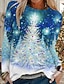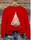 בגדי ריקוד נשים סווטשירט סוודר גראפי עץ חג המולד אופנתי יום יומי שרוול ארוך צווארון עגול קצר חולצות רגילות רחוב לבוש ליום קזו'אל דפוס אודם פול כחול בהיר אביב סתיו חורף