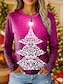 חג המולד בגדי ריקוד נשים חולצה קצרה גראפי עץ חג המולד וינטאג' אופנתי מסוגנן שרוול ארוך צווארון עגול קצר חולצות רגילות יומי סוף שבוע דפוס אודם פול סגול תלתן אביב סתיו חורף