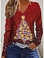 חג המולד בגדי ריקוד נשים חולצה קצרה גראפי עץ חג המולד וינטאג' מסוגנן קלסי שרוול ארוך צווארון V חולצות רגילות יומי דפוס אודם אביב סתיו חורף